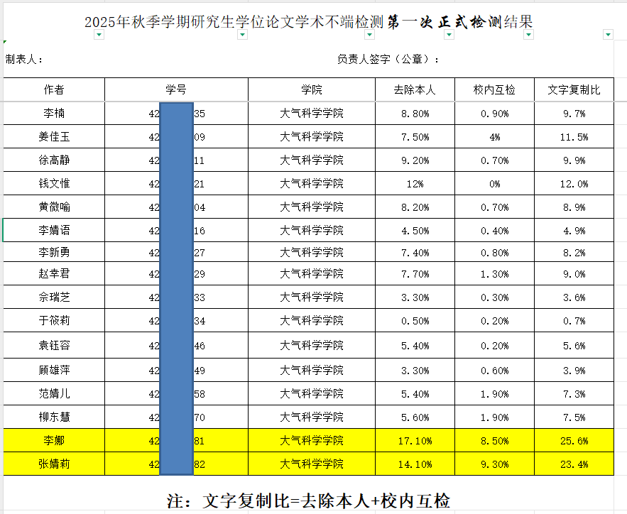 2025年秋季学期研究生学位论文学术不端检测第一次正式检测结果