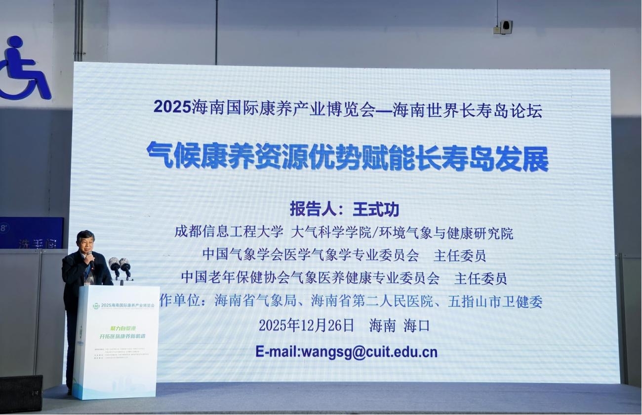 26日下午,在“海南世界长寿岛论坛”上,王式功教授与来自中国科学院、联合国老龄所及海南省相关厅局的专家领导同台发表主旨演讲。王教授作了题为“气候康养资源优势赋能长寿岛发展”的报告,系统梳理了中国长寿之乡空间分布特征,深入阐释“天人相应”的生态哲学内涵与实践表现形式,结合海南独特的气候禀赋,深入探析其气候康养资源优势,通过剖析气候条件与区域长寿现象之间的内在关联,为海南发挥其生态气候资源优势、打造世界级长寿康养目的地提供了科学依据。