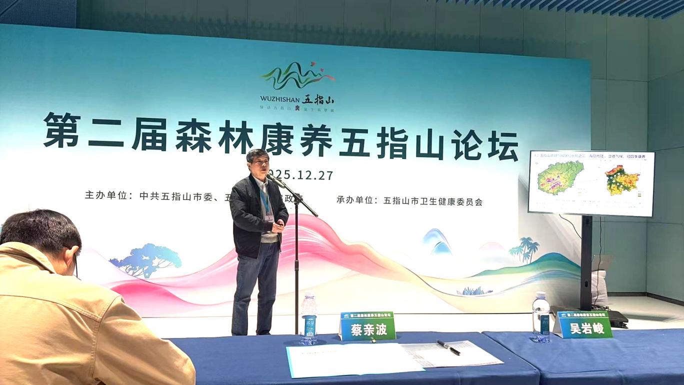 27日上午,王教授再次受邀出席“第二届森林康养五指山论坛”,作题为“天赐康养境,气候铸华章——五指山气候资源优势与康养高质量发展路径”的报告,他从地理、气候、生态环境角度系统剖析了五指山自然资源优势,阐述其产生的气候康养效应,并针对五指山市的康养高质量发展路径提出了具有前瞻性和可操作性的战略建议。